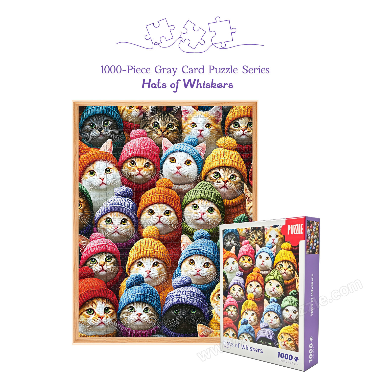 Whether you’re seeking a cozy solo activity, a cute decor piece, a family bonding project, or a heartfelt gift, this 1000-Piece Gray Card Whiskers & Hats Puzzle checks all the boxes. Click "Add to Cart" now and let the cute cat assembly begin!