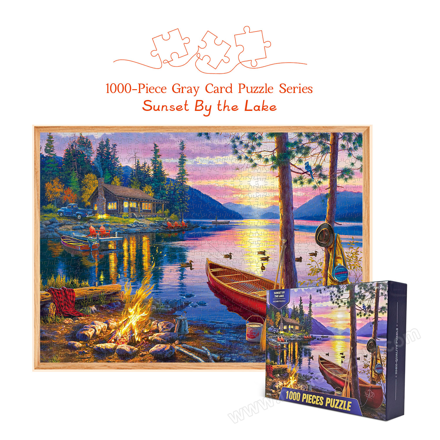 Lake Sunset 1000-Piece Gray Board Jigsaw Puzzle | Non-Partition Premium Gray Board | Nature Landscape Art for Adults | Finished Size 700x500mm with 1:1 Poster