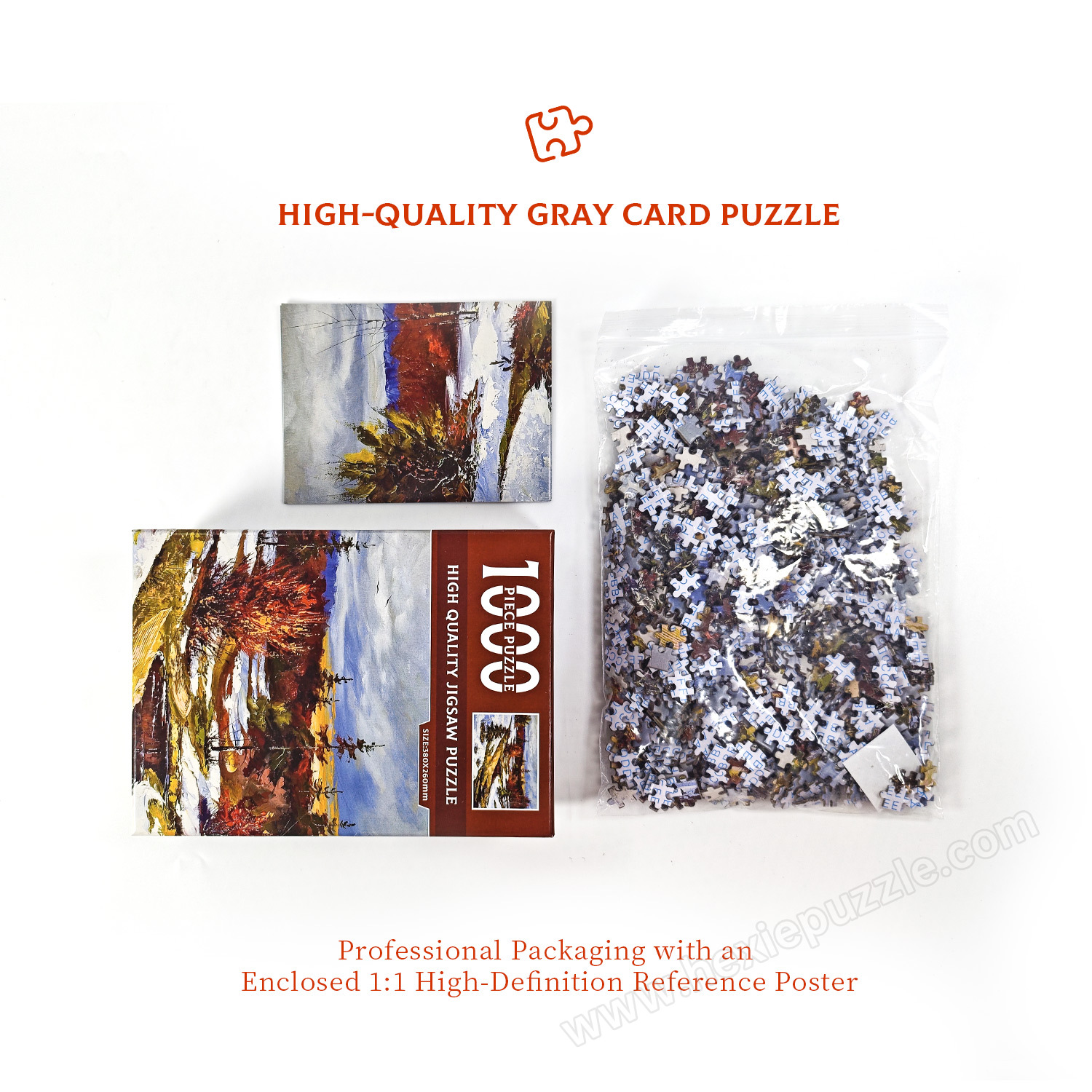 Bring the serene beauty of a winter landscape into your home. Whether for personal enjoyment, family bonding, or as a distinctive gift, this 1000-piece gray board puzzle delivers quality, tranquility, and lasting value.