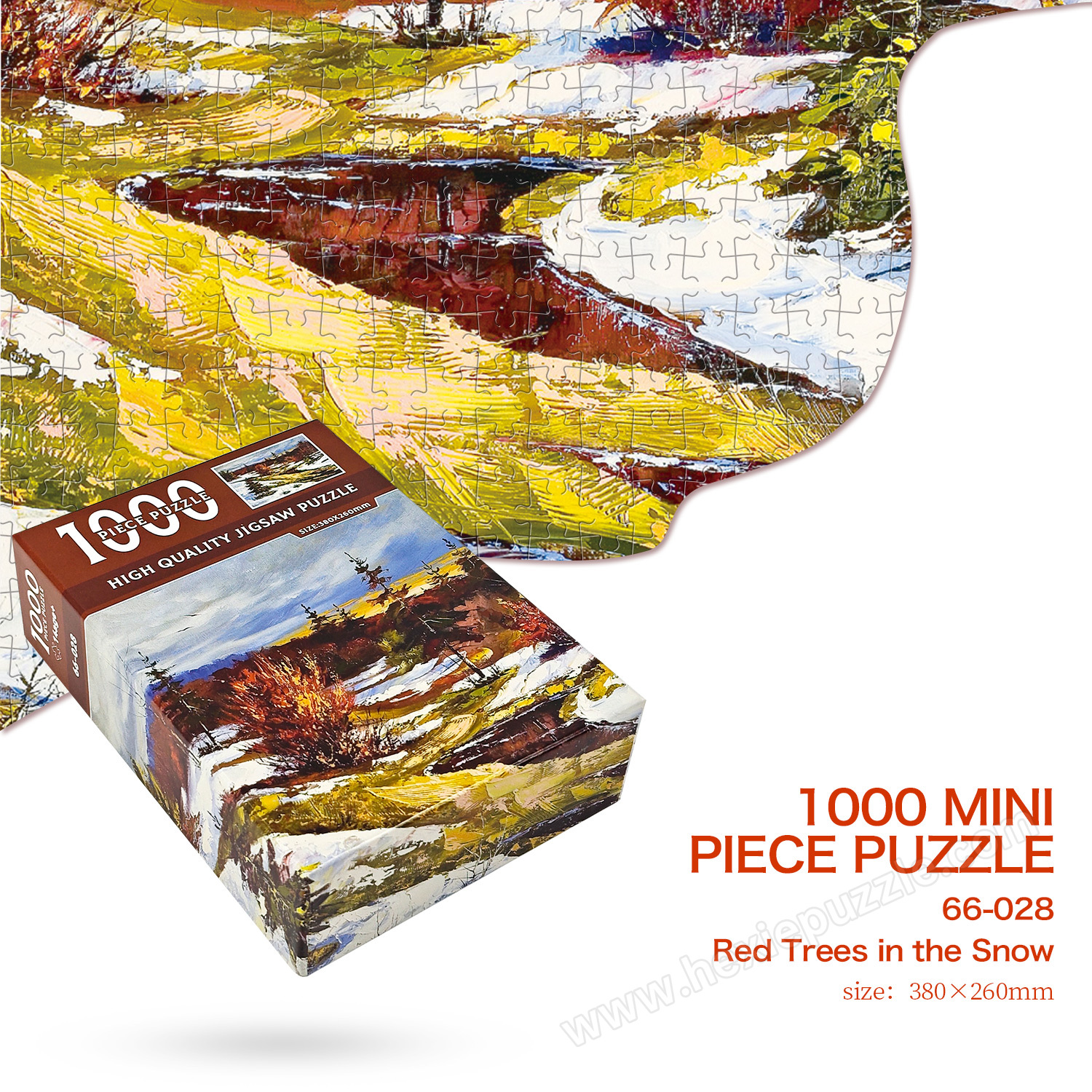 Immerse yourself in the serene beauty of a winter wonderland with this stunning 1000-piece jigsaw puzzle featuring a striking red tree against a pristine snowy landscape. The bold red foliage creates a dramatic contrast against the soft white snow, evoking a sense of peace and quiet contemplation.