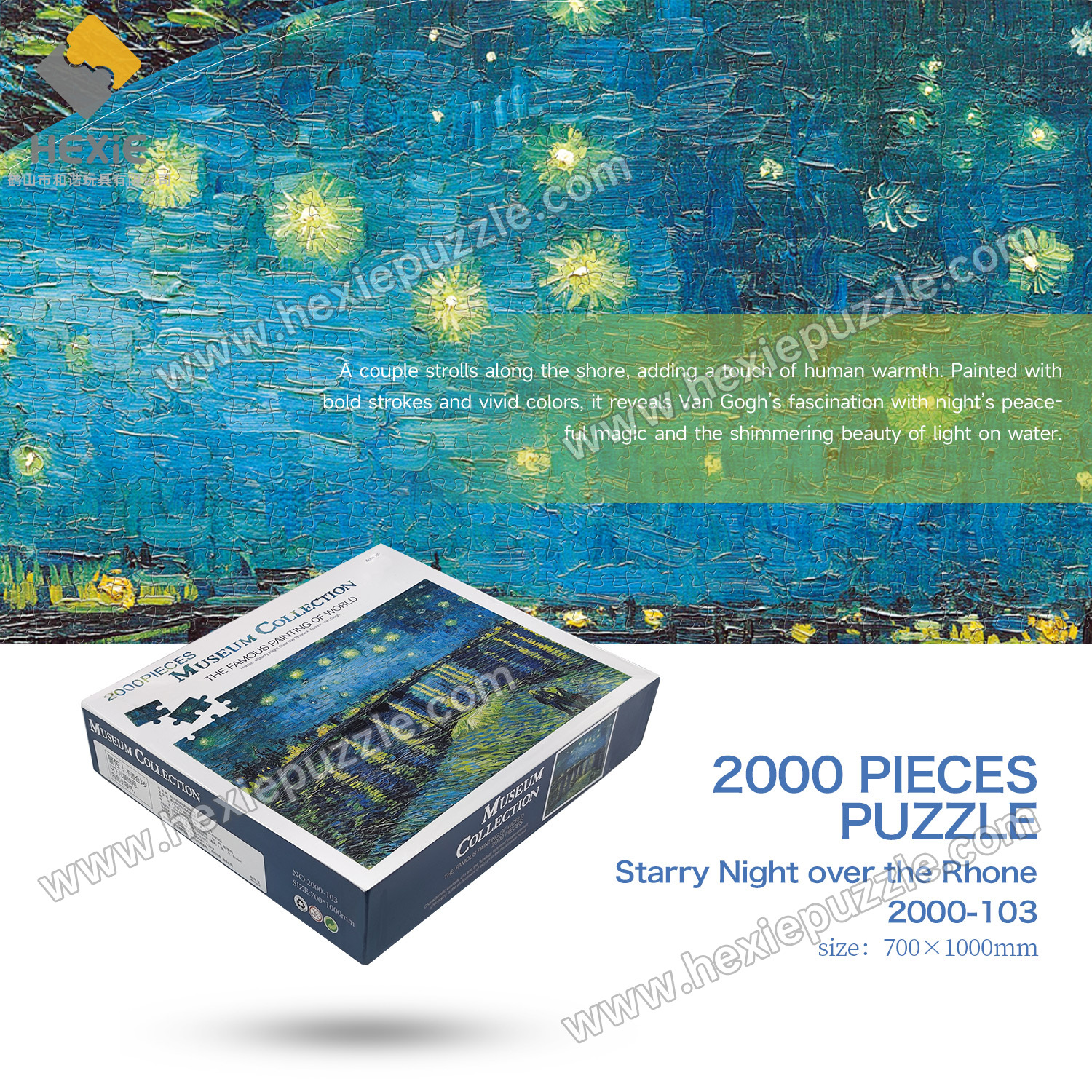 Whether you want to enjoy the relaxation of puzzle-solving, decorate your home with art, or give a unique gift to a loved one, this 2000-piece gray card Starry Night Over Rhone puzzle is the perfect choice. Click the "Add to Cart" button now and start your artistic puzzle journey!