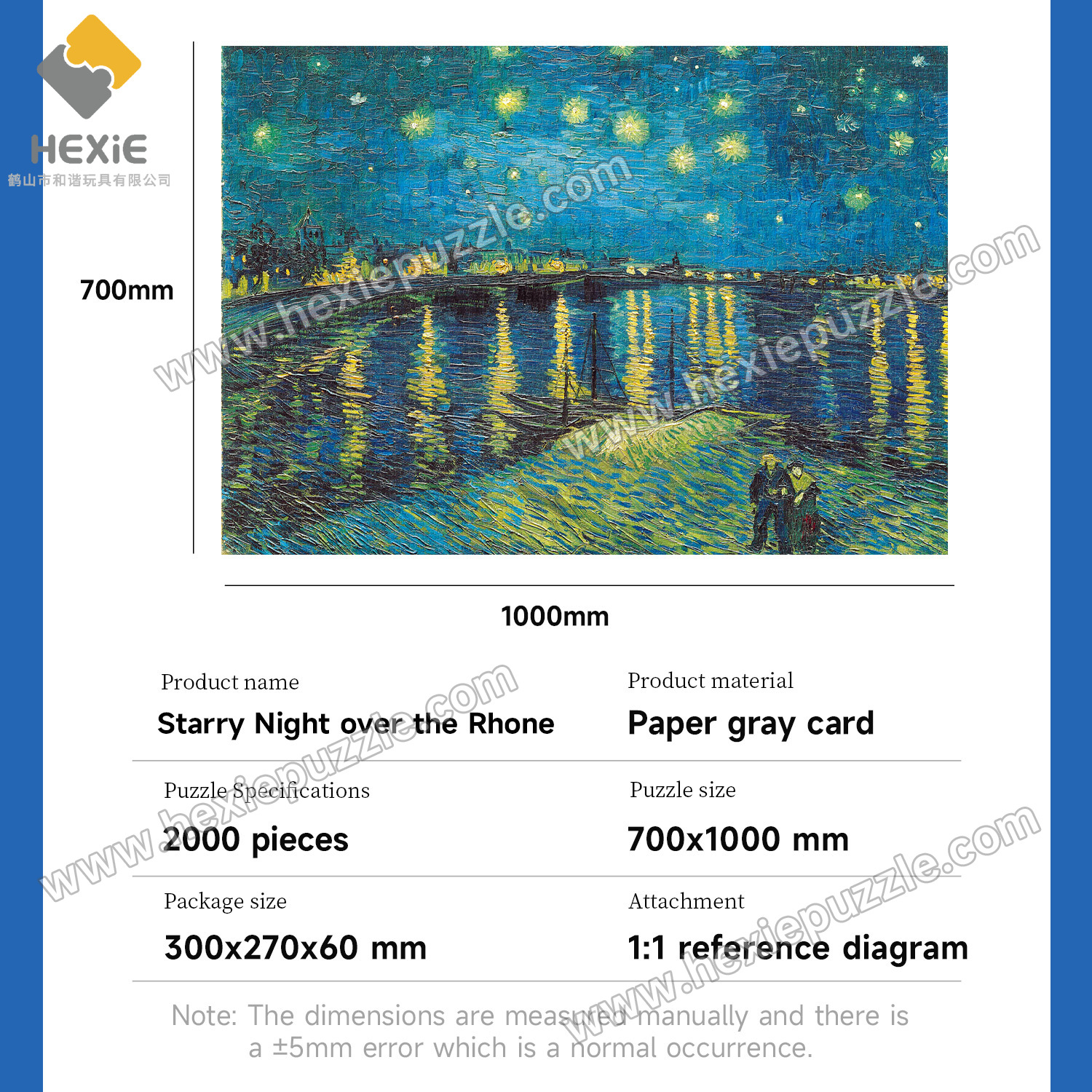 | 2000 pieces of grey pieces 1000x700 jigsaw puzzle | 300*270*60 | 1000*700mm(士5mm) | 1:1 original image | 12 boxes per box | 55*39.5*31.5cm | 17 |