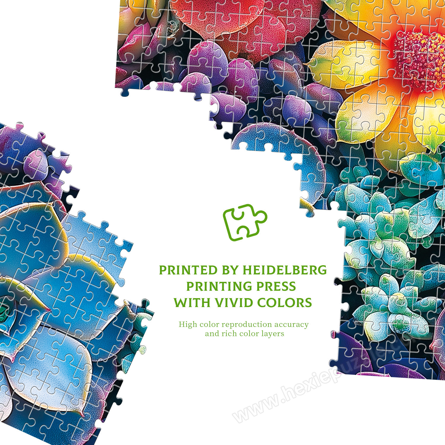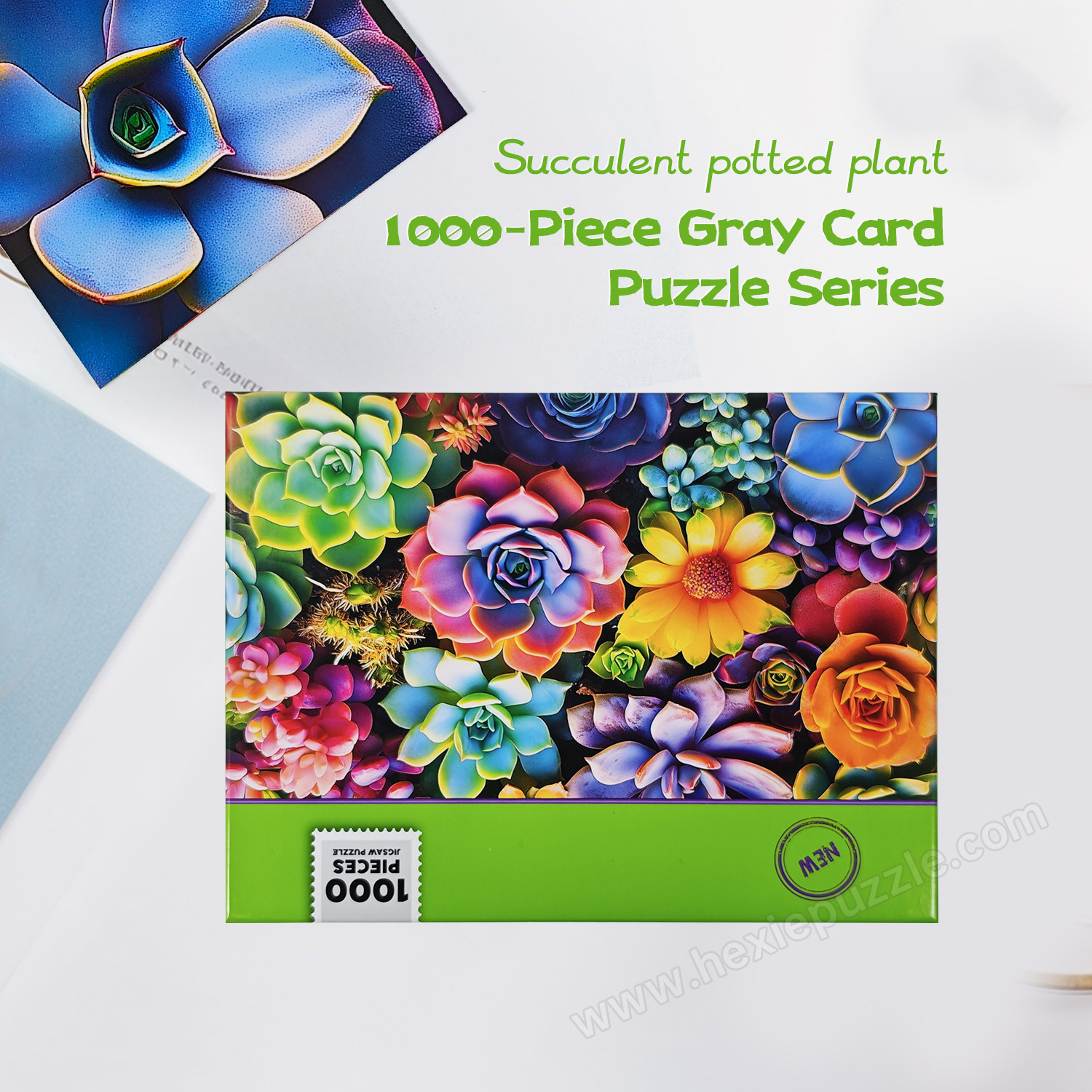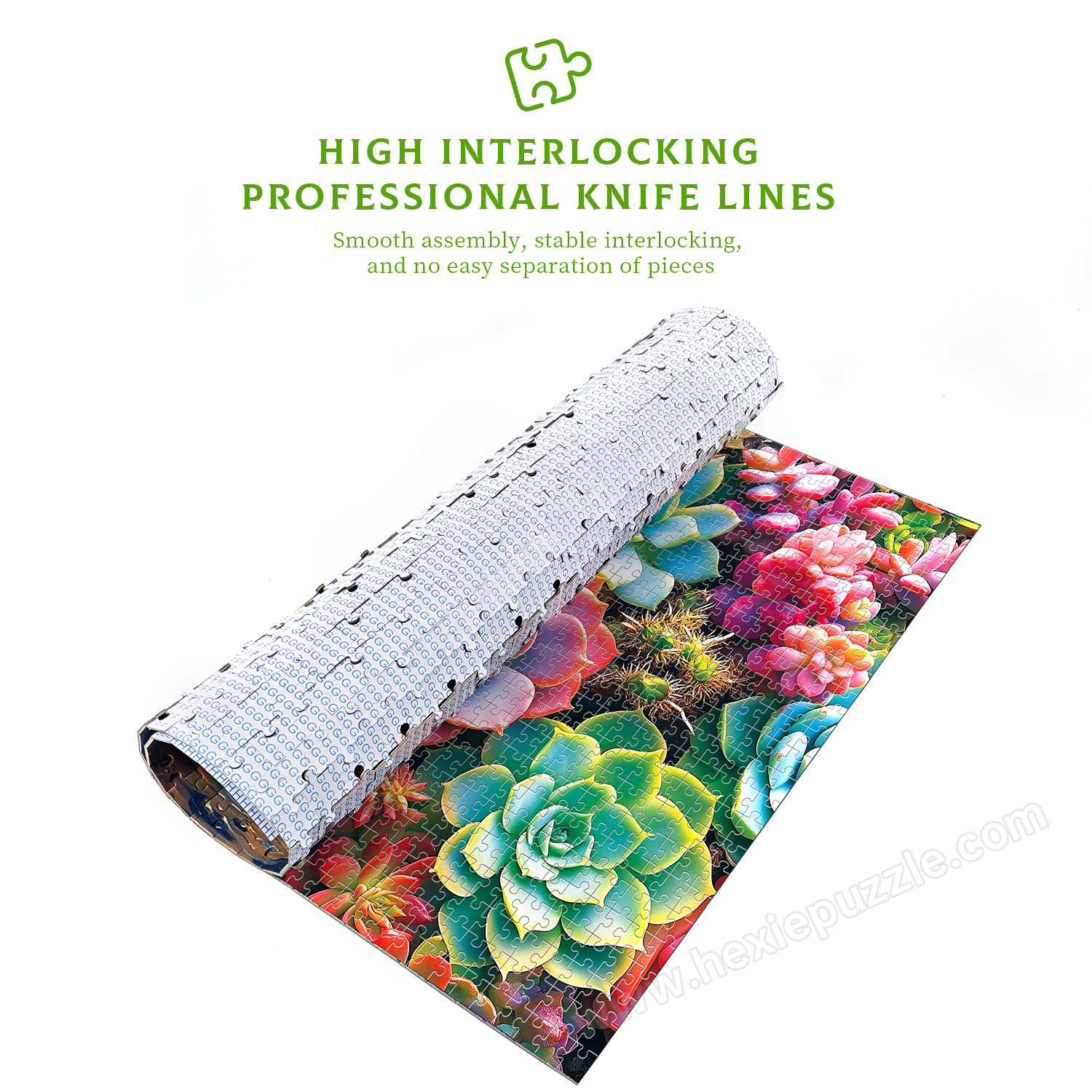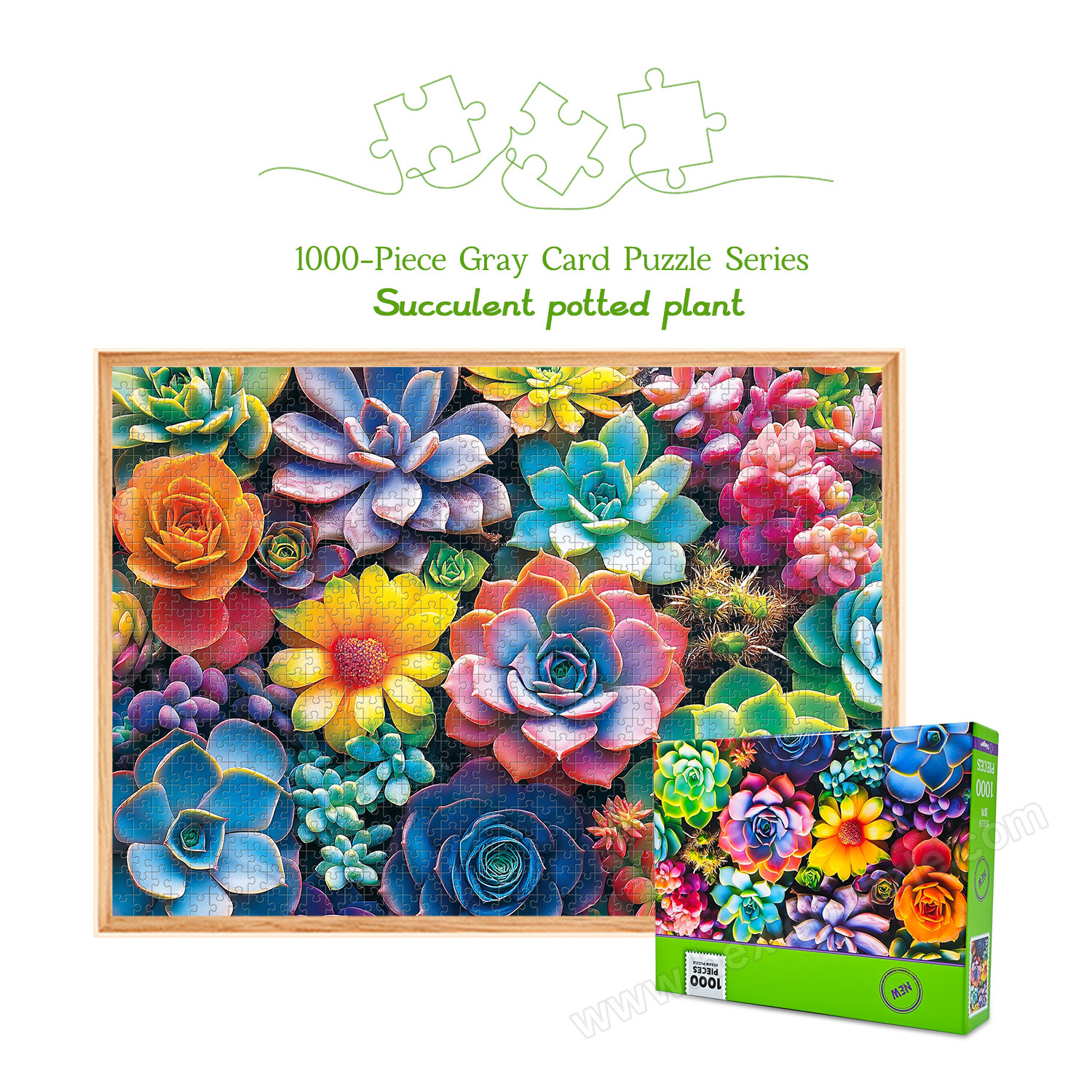 Crafted from thick, durable gray card material. The pieces are rigid, resist bending, and fit together securely with precise cuts. High-definition printing ensures the fresh, vibrant colors of the succulents remain true.