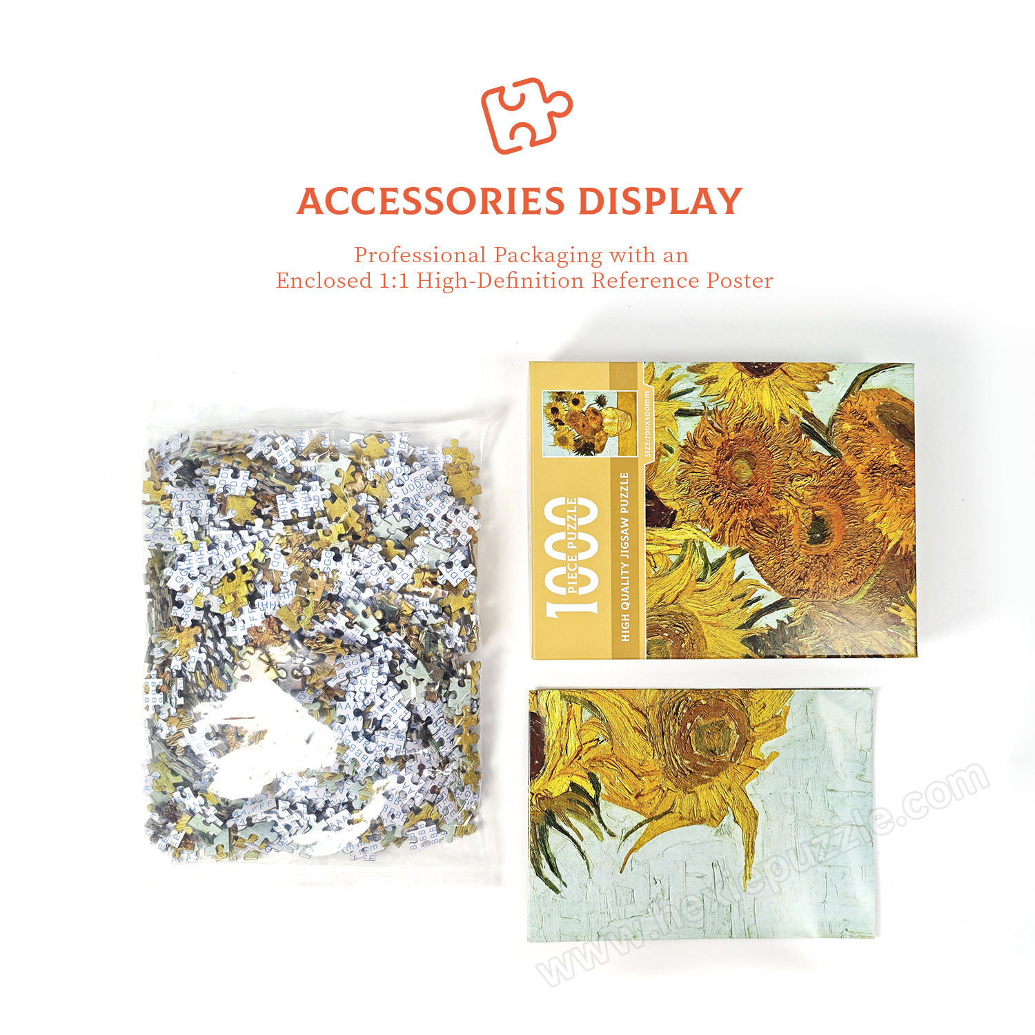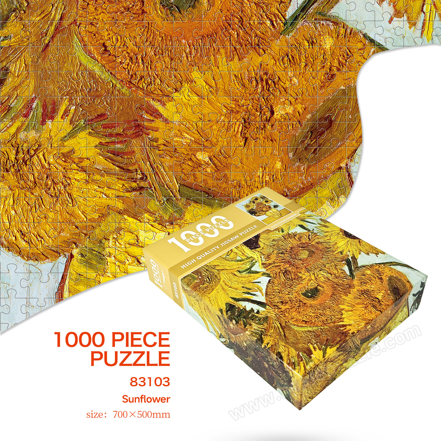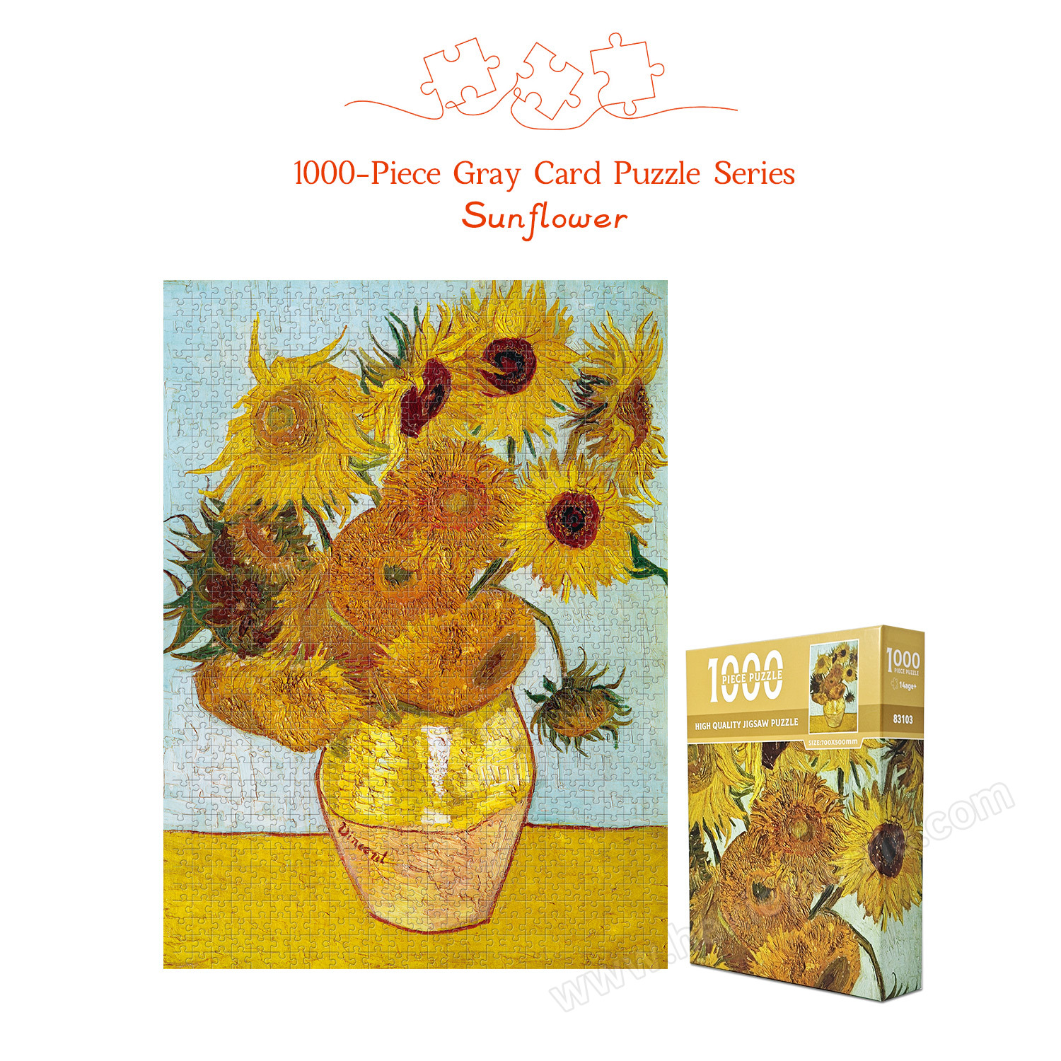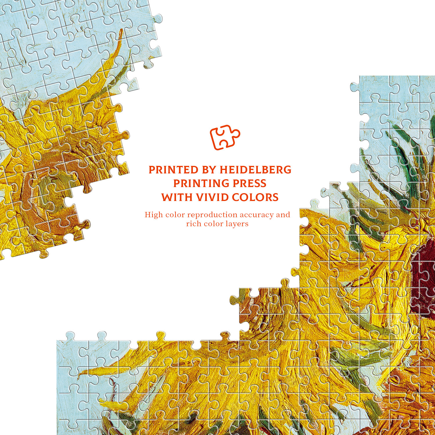 Immerse yourself in the timeless beauty of Vincent van Gogh's iconic Sunflowers masterpiece with this premium 1000-piece jigsaw puzzle. Expertly printed on high-density gray cardboard, every piece captures the vibrant yellow hues and expressive brushstrokes that define this beloved work of art. Designed for both art lovers and puzzle enthusiasts, this set offers a rewarding challenge and a stunning result worthy of framing.