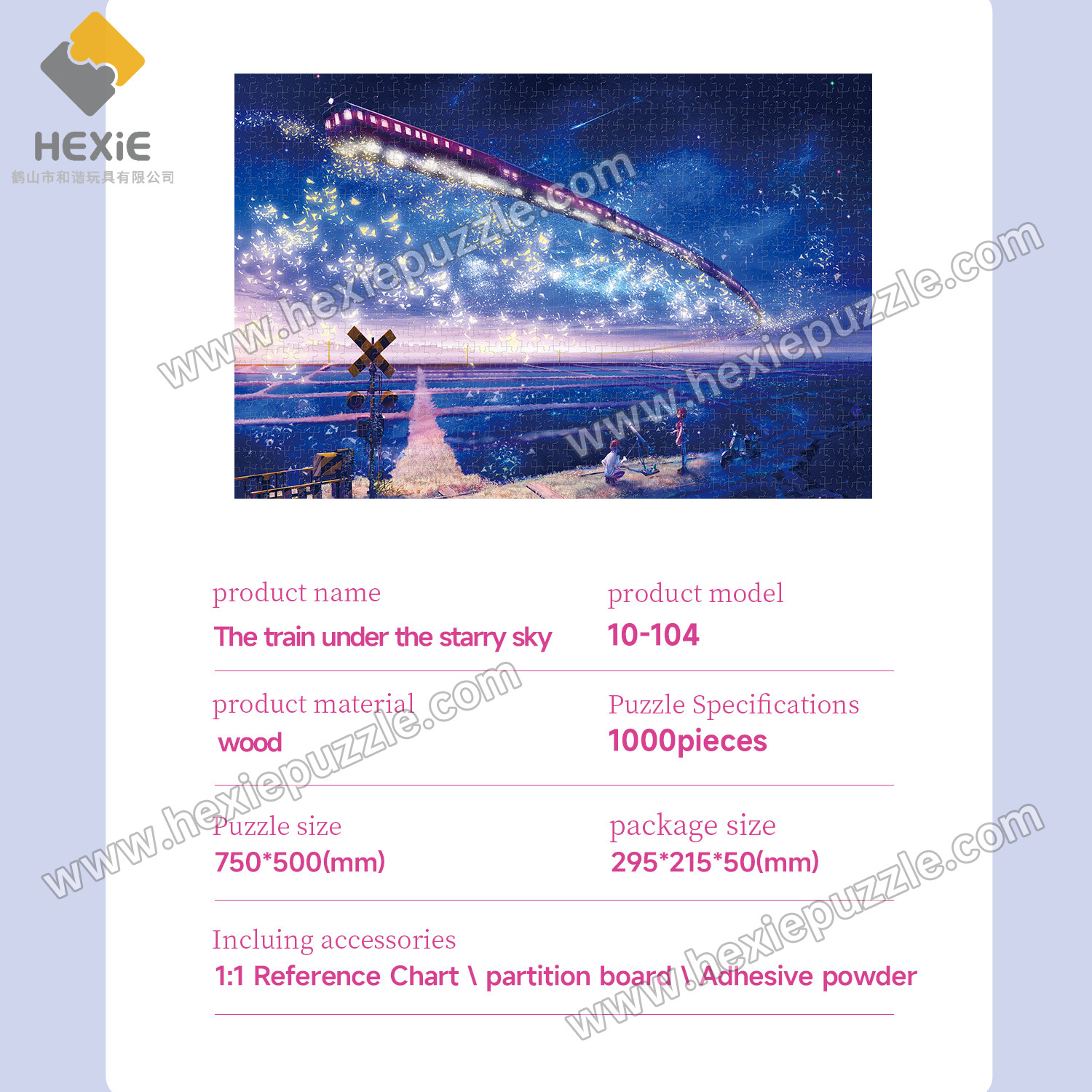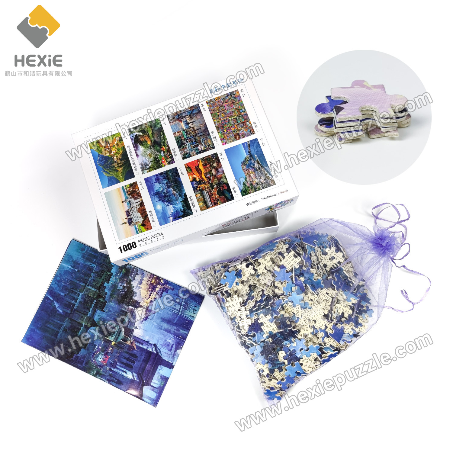 | 1000 pieces of wooden 750x500 jigsaw puzzles | 295*215*48 | 1:1 original image - partition board - glue powder - mesh bag | 24 boxes per box | 63*44*31 | 19.5 |